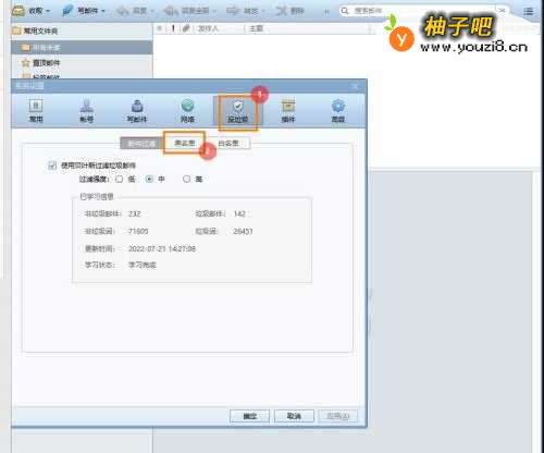 2在设置页面,点击【反垃圾】→【黑名单】。
